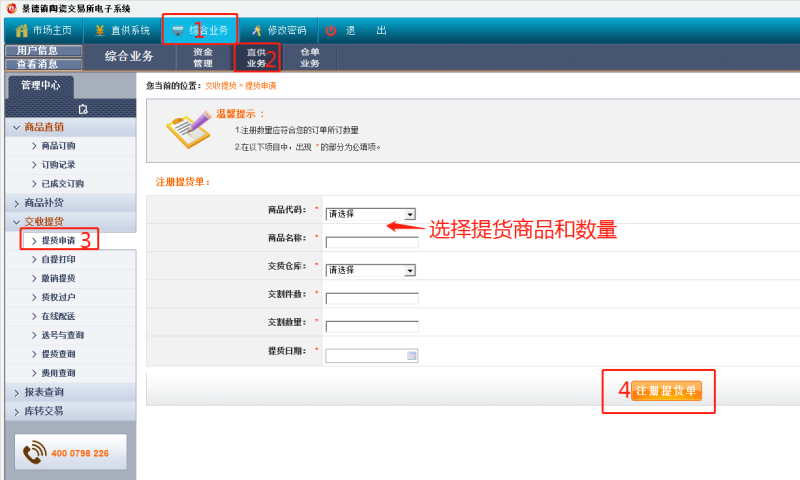 登錄客戶(hù)端---綜合業(yè)務(wù)---直供業(yè)務(wù)---提貨申請(qǐng)---注冊(cè)提貨單
