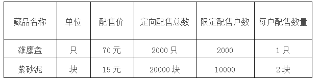 應廣大投資人的強烈需求,經景德鎮陶瓷交易所研究決定,向新開戶投資人定向配售《雄鷹盤》、《紫砂泥》兩個藏品,具體事項公告如下: