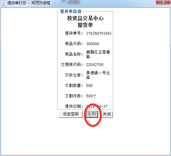 綜合業務---發售業務---交收提貨---自提打印,設定提貨密碼、打印;