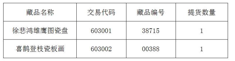 2016134關于交易藏品《徐悲鴻雄鷹圖瓷盤》等提貨公告