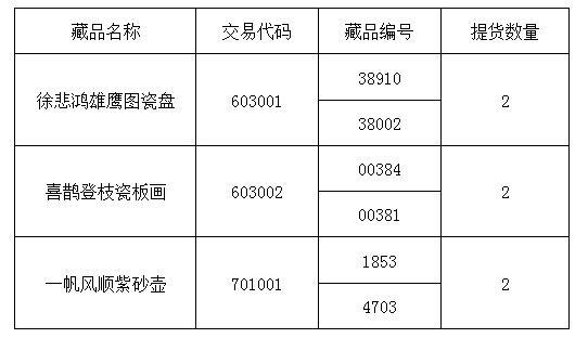 應(yīng)投資人會員申請,經(jīng)本交易所對申請人信息核實以及出庫藏品復(fù)驗后,提貨藏品已完成發(fā)貨,提醒廣大投資者注意盤面藏品數(shù)量變化。提貨藏品信息如下: