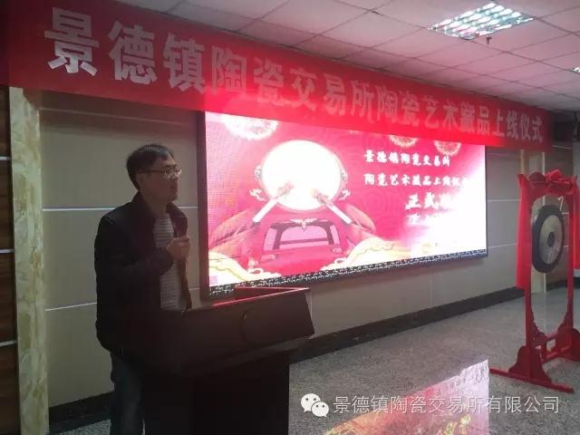 2016年11月15日,微風拂面,細雨蒙蒙,伴隨著一陣陣清脆的鑼聲,景德鎮陶瓷交易所在會展大廳隆重舉行了第六批藏品上線儀式,此次發行機構為北京時代新藝雕塑設計有限責任公司。到場的領導有景德鎮陶瓷交易所執行董事周雪松、北京時代新藝雕塑設計有限公司總經理胡宗元、安徽省書協副主席王亞洲、副總經理胡攀、市場部經理劉輝、財務部經理徐東平以及景德鎮市高級陶瓷工藝師馬易柱,在此大家共同見證了陶交所這一激動人心的重要時刻。