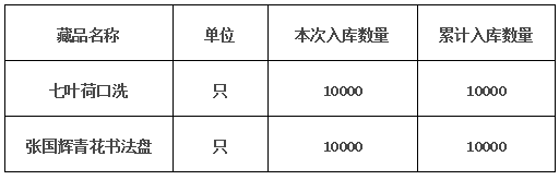 應發行會員申請,《七葉荷口洗》和《張國輝青花書法盤》已201733辦理景德鎮陶瓷交易所托管中心入庫手續。檢驗工作已經完成。現將托管結果公布如下: