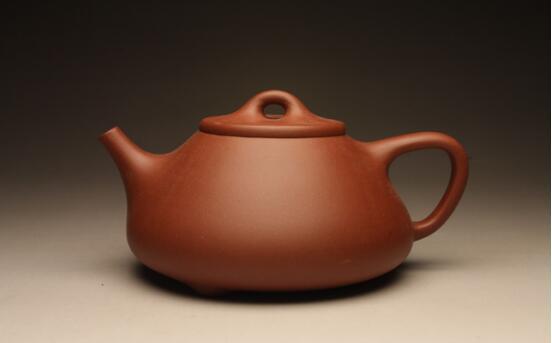 “石瓢”最早稱為“石銚”,“銚”在《辭海》中釋為“吊子,一種有柄,有流的小烹器”。“銚”從金屬器皿變為陶器,最早見于北宋大學士蘇軾《試院煎茶》詩:“且學公家作名欽,磚爐石銚行相隨”。蘇東坡把金屬“銚”改為石“銚”,這與當時的茶道有著密切的關系。蘇東坡貶官到宜興蜀山教書,發現當地的紫色砂罐煮茶比銅、鐵器皿味道好,于是他就地取材,模仿金屬吊子設計了一把既有“流”(壺嘴),又有”梁”(壺提)的砂陶之“銚”用來煮茶,這“銚”也即后人所稱的“東坡提梁”壺,這可謂最早的紫砂“石銚”壺。