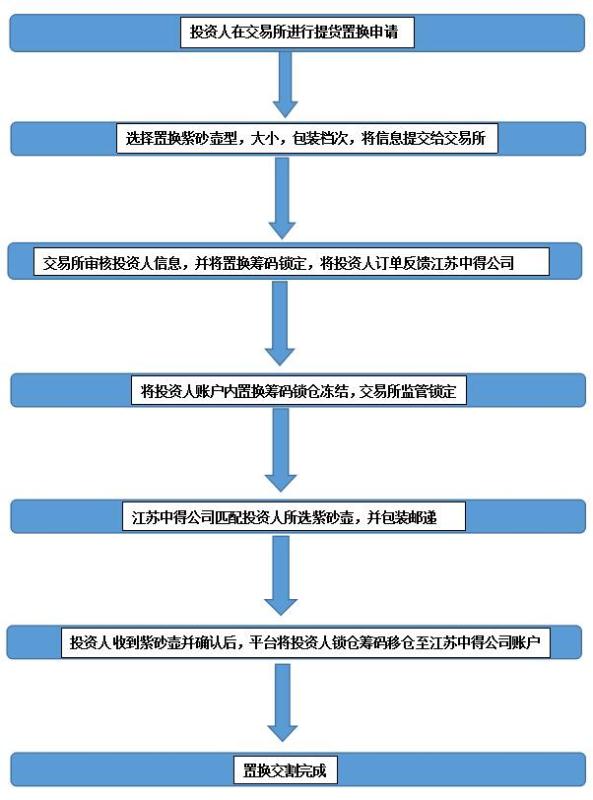 為了保護線上投資人的利益,促進線上線下的流通,江蘇中得文化發展有限公司聯合景德鎮陶瓷交易所(以下簡稱陶交所)將推出“線上泥料藏品置換”活動。持有(編號501001)黃龍山紫泥鯊皮青、(編號501002)中鼎底槽清紫砂泥藏品的投資人申請提貨時可以選擇直接提取紫砂泥料,也可以與線上泥料制作的紫砂器物進行籌碼置換。